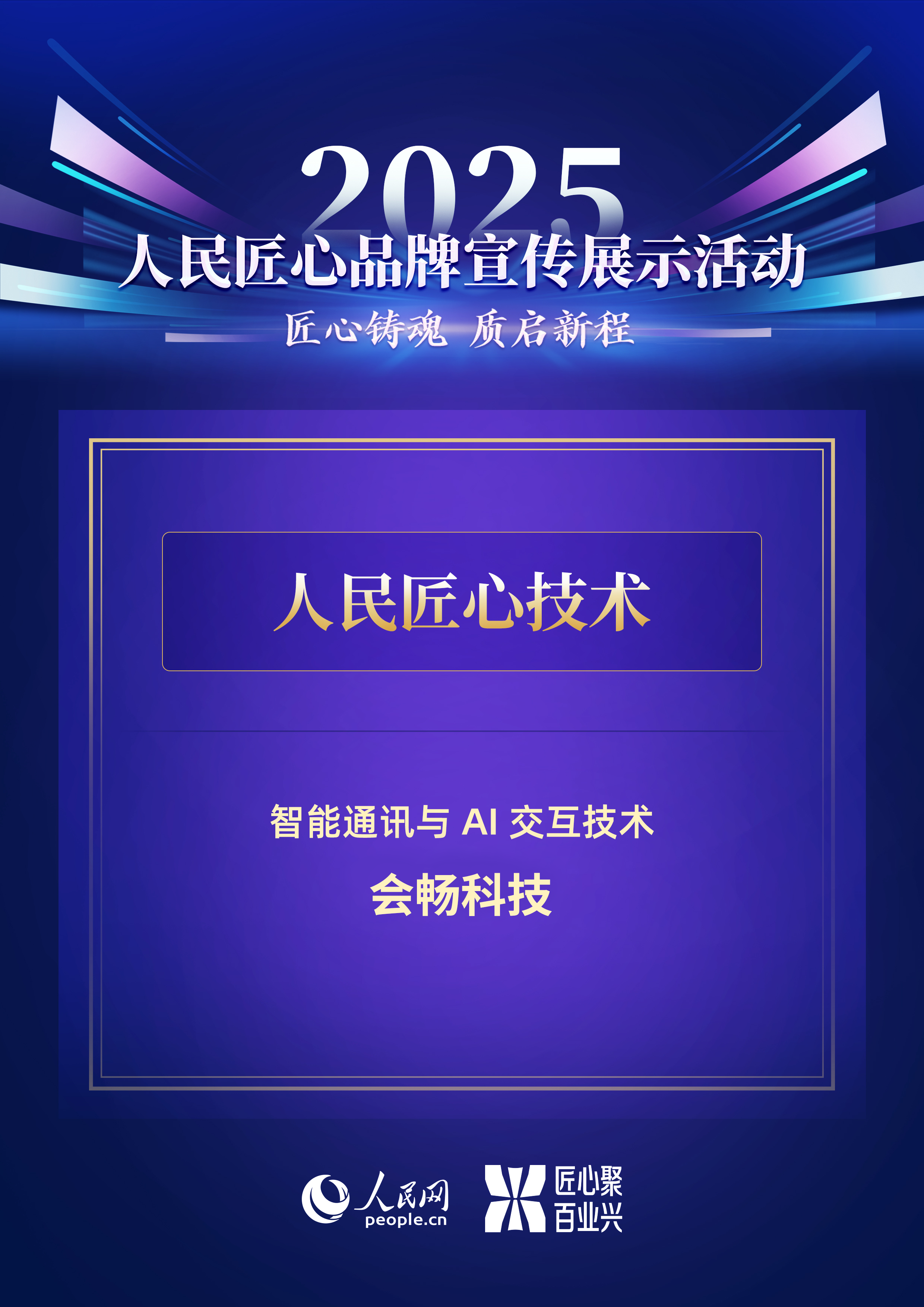 近日,由人民网主办的 2025 人民匠心品牌宣传展示活动” 正式揭晓成果,会畅科技凭借智能通讯与 AI 交互技术,入选 “人民匠心技术” 案例。本次活动以 “匠心铸魂 质启新程” 为核心主题,聚焦各行业领域中兼具技术创新力、应用价值与匠心精神的优质成果,是行业内具有较高公信力的品牌与技术活动之一。