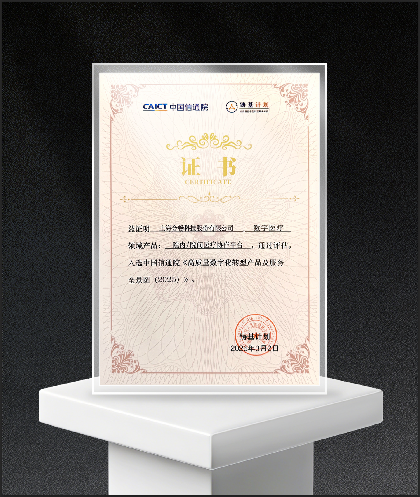 近日,会畅科技凭借在数字化转型领域的技术积淀与实践成果,受邀出席中国信息通信研究院“铸基计划2026年度会议”,并成功入围《高质量数字化转型产品及服务全景图》,成为数字经济时代企业数智化升级的标杆典范。